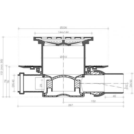Душевой трап Pestan Confluo Standard Square 2 13000006 144x144/50 мм, с решеткой, перфорированный, хром