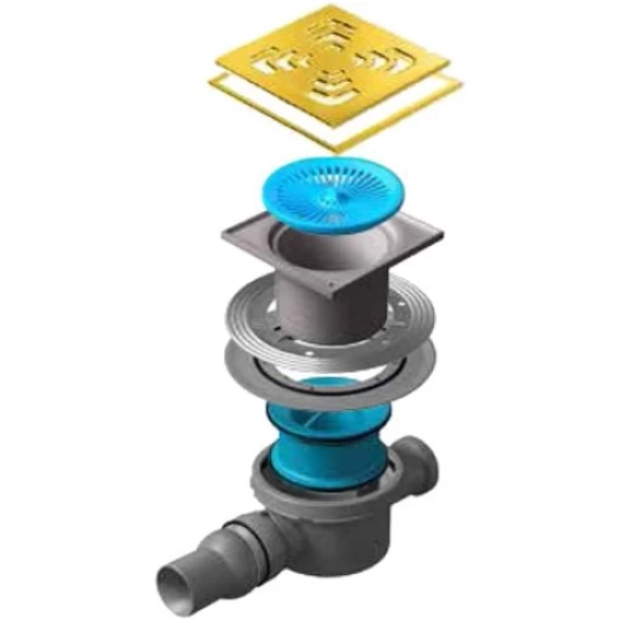 Душевой трап Pestan Confluo Standard Square Mask Gold 2 13000145 144x144/50 мм, с решеткой, перфорированный, золотой