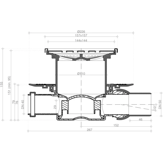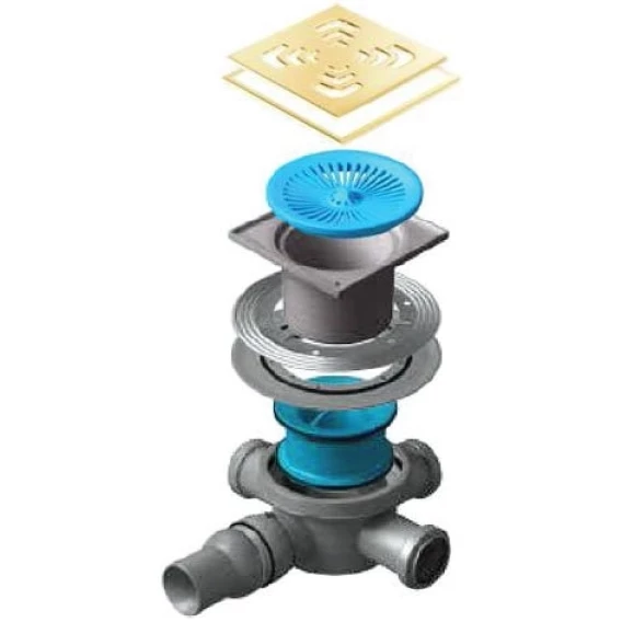 Душевой трап Pestan Confluo Standard Square Mask Gold 3 13000146 144x144/50 мм, с решеткой, перфорированный, золотой