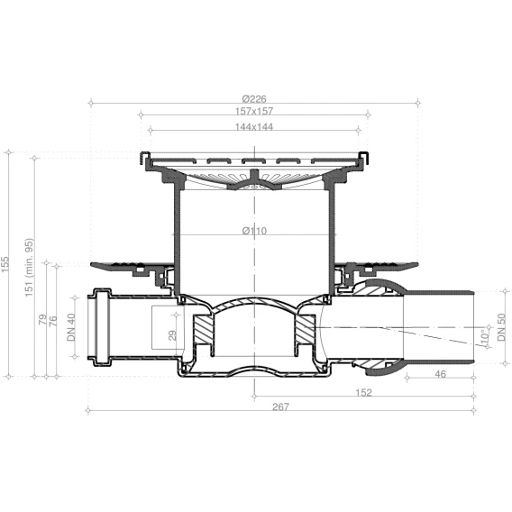 Душевой трап Pestan Confluo Standard Tide Mask Gold 2 13000141 144x144/50 мм, с решеткой, перфорированный, золотой