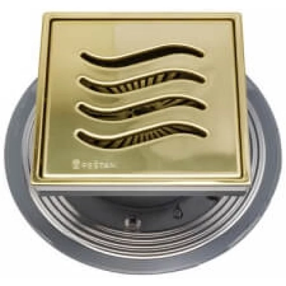 Душевой трап Pestan Confluo Standard Tide Mask Gold Vertical 13000163 144x144/50 мм, с решеткой, перфорированный, золотой