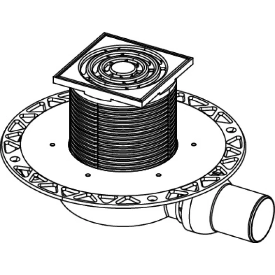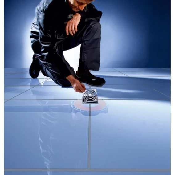 - декоративная решетка из полированной нержавеющей стали 100 × 100 мм с монтажным элементом и уплотнительным резиновым кольцом;