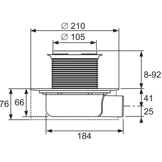 Декоративная решетка, нержавеющая сталь, 100 х 100 мм• Установочный звукоизолирующий элемент из EPS (пенополистирол) с крепежными элементами к бетонному полу• Шаблон-заглушка из EPS (пенополистирол) для верхней части трапа на время заливки стяжки• Сифон пластиковый (РР) с горизонтальным прямым отводом DN 50 с заглушкой. Уровень гидрозатвора 27 мм.Производительность (согласно EN 1253) при уровне воды над решеткой 10/20 мм:― при минимальной высоте верхней части трапа: 0,47/0,54 л/с― при максимальной высоте верхней части трапа: 0,65/0,88 л/с