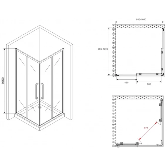 Душевой уголок 100x50 см Abber Schwarzer Diamant AG301005-S505 прозрачное