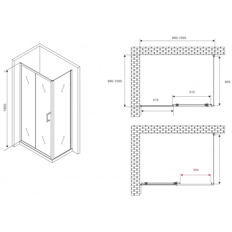 Душевой уголок 100x100 см Abber Schwarzer Diamant AG30100B5-S100B5 прозрачное