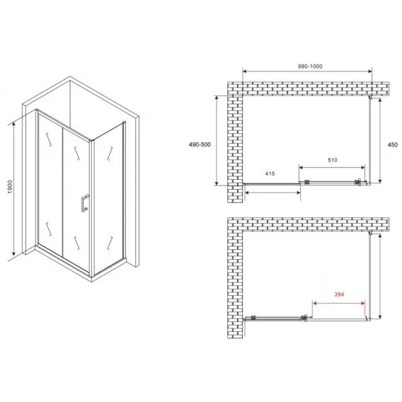 Душевой уголок 100x50 см Abber Schwarzer Diamant AG30100B5-S50B5 прозрачное