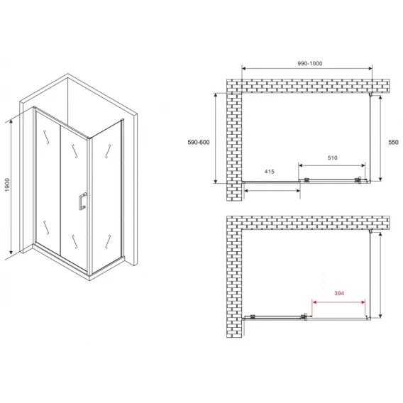 Душевой уголок 150x90 см Abber Schwarzer Diamant AG30150B5-S90B5 прозрачное