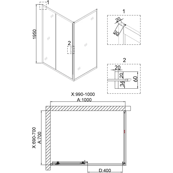 Душевой уголок 100x70 см Niagara NG-42-10AG-A70G прозрачное