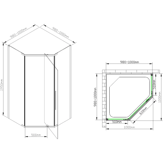 Душевой уголок 100x100 см Deto PC100 прозрачное