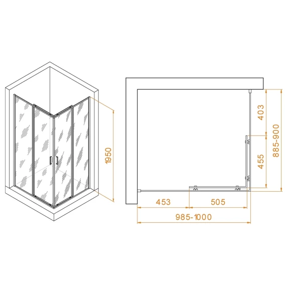 Душевой уголок 100x90 см RGW PA-040B Passage 3508104090-24 матовое