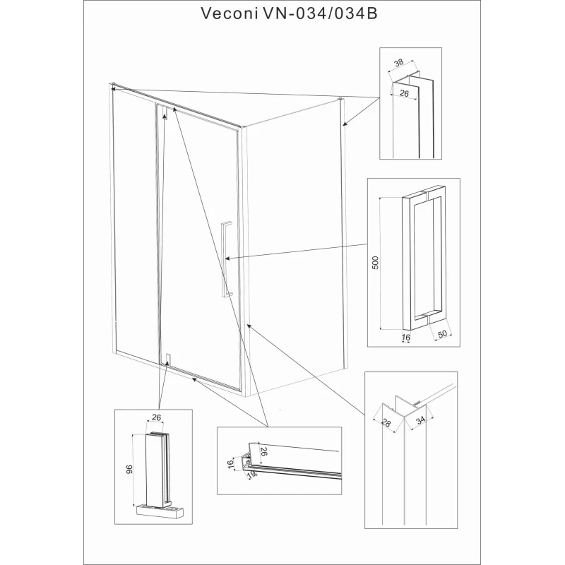 Душевой уголок 100x90 см Veconi Rovigo RV034B-10090-01-C7 прозрачное