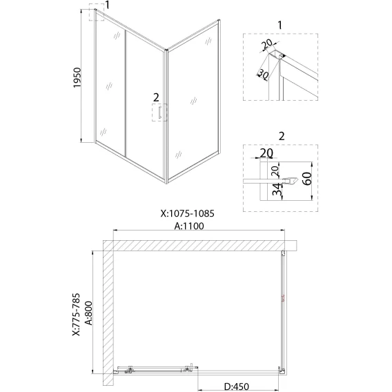 Душевой уголок 108,5x78,5 см Niagara NG-82-11AB-A80B прозрачное