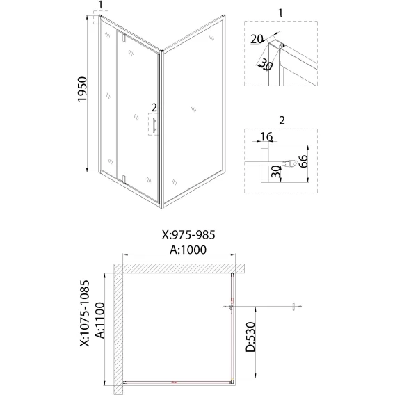 Душевой уголок 108,5x88,5 см Niagara NG-82-11AB-A90B прозрачное
