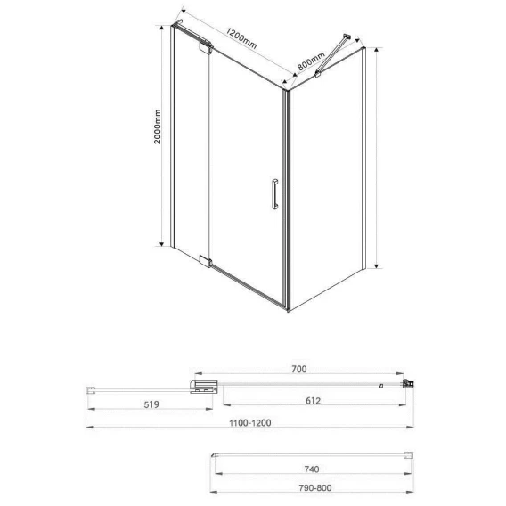 Душевой уголок без поддона 120x90x185 см River DON XL 120/90/24 МТ L/R