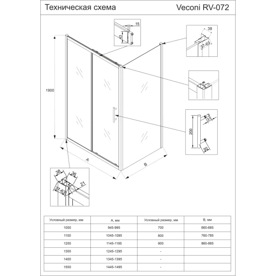 Душевой уголок 150x100 см Veconi Rovigo RV040B-150100-01-C1 прозрачное