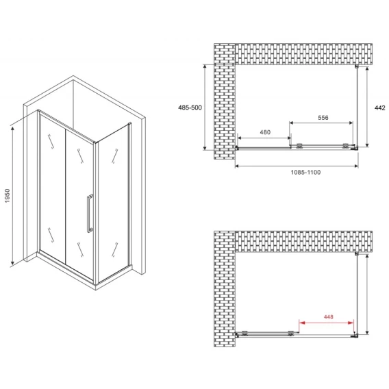 Душевой уголок 110x50 см Abber Schwarzer Diamant AG30110BH-S50B прозрачное