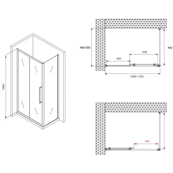 Душевой уголок 110x50 см Abber Schwarzer Diamant AG30110MH-S50M матовое
