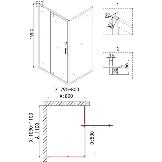 Душевой уголок 110x80 см Niagara NG-43-11AG-A80G прозрачное