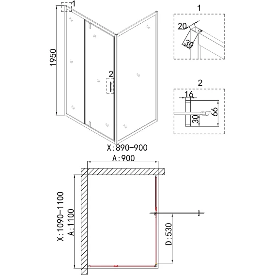Душевой уголок 90x80 см Niagara NG-43-9AG-A80G прозрачное