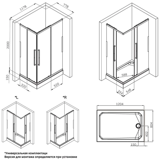 Душевой уголок 117,8x77,8 см Am.Pm Func W84G-403-12080-BT прозрачное