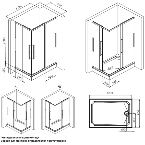 Душевой уголок 117,8x87,8 см Am.Pm Func W84G-403-12090-BT прозрачное