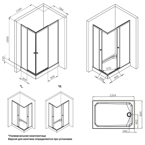 Душевой уголок 118,4x78,4 см Am.Pm X-Joy W94G-403-12080-MT прозрачное