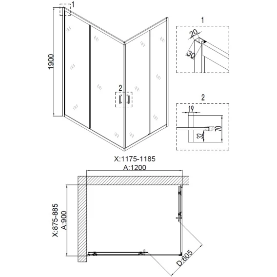 Душевой уголок 120x100 см Abber Schwarzer Diamant AG30120BH-S100B-S100B прозрачное
