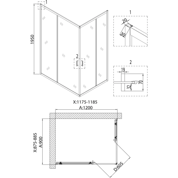 Душевой уголок 120x100 см Abber Schwarzer Diamant AG30120BH-S100B-S100B прозрачное