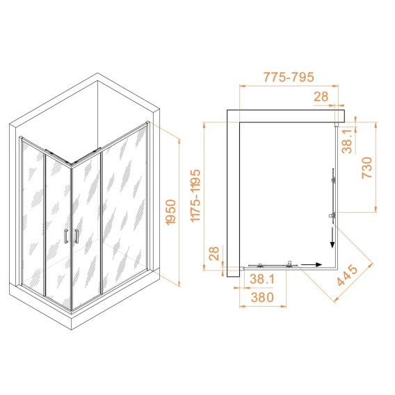 Душевой уголок 119,5x79,5 см RGW PA-246B Passage 030824682-14 прозрачное