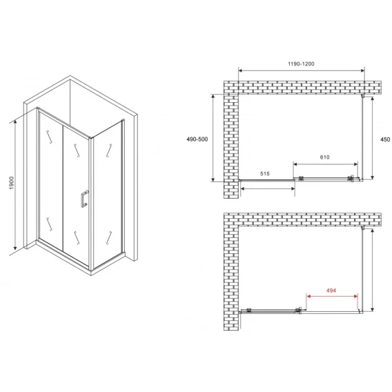 Душевой уголок 120x50 см Abber Schwarzer Diamant AG301205-S505 прозрачное
