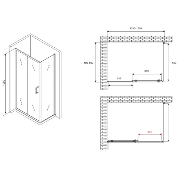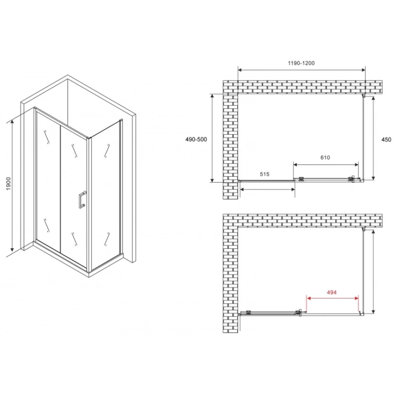 Душевой уголок 120x50 см Abber Schwarzer Diamant AG30120B5-S50B5 прозрачное