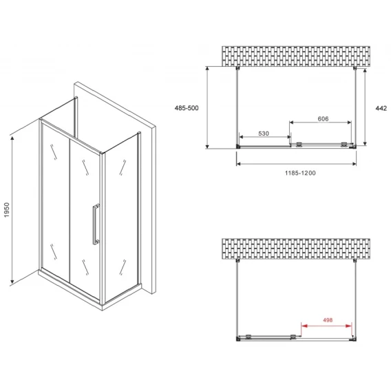 Душевой уголок 120x50 см Abber Schwarzer Diamant AG30120BH-S50B прозрачное