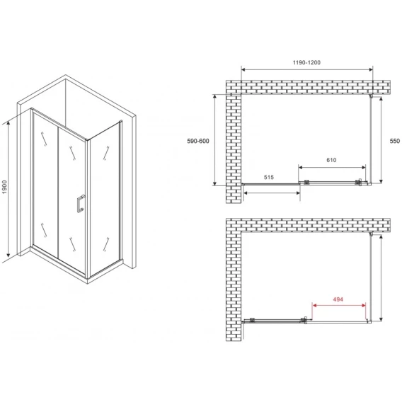 Душевой уголок 120x60 см Abber Schwarzer Diamant AG301205-S605 прозрачное