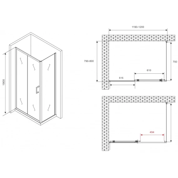 Душевой уголок 120x80 см Abber Schwarzer Diamant AG30120B5-S80B5 прозрачное