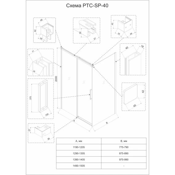 Душевой уголок 120x89 см Veconi Premium Trento PTC40-SP-12090-B-01-C4 прозрачное