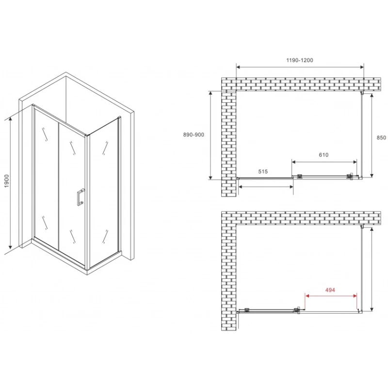Душевой уголок 120x90 см Abber Schwarzer Diamant AG30120B5-S90B5 прозрачное