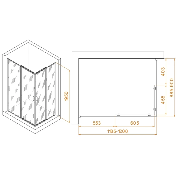 Душевой уголок Orange E23-16090TB 160x88,5 см, профиль черный матовый, стекло прозрачное