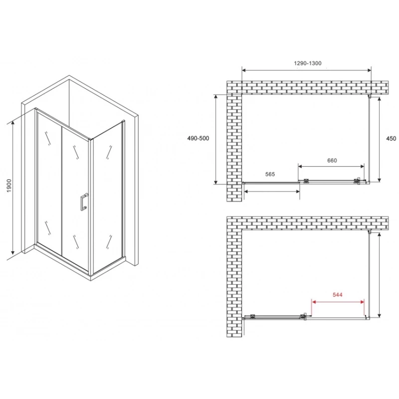 Душевой уголок 130x50 см Abber Schwarzer Diamant AG30130B-S50B-S50B прозрачное