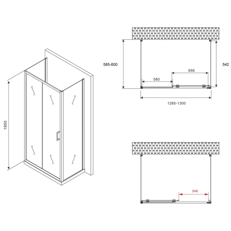 Душевой уголок 130x60 см Abber Schwarzer Diamant AG30130B-S60B-S60B прозрачное