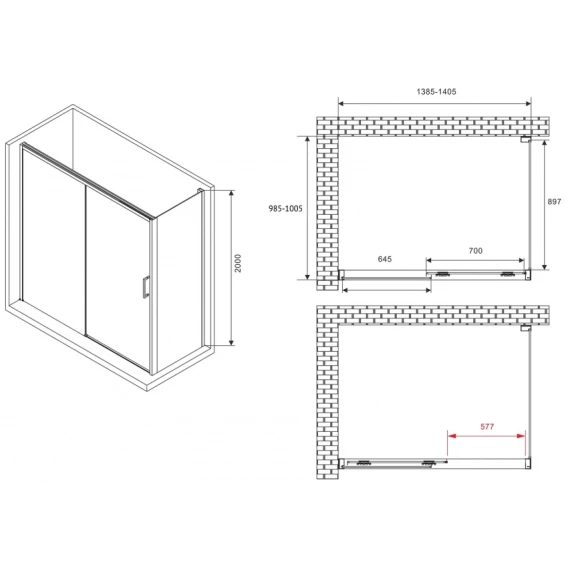 Душевой уголок 140x100 см Abber Komfort AG93140-S102 прозрачное