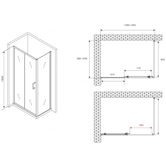 Душевой уголок 140x100 см Abber Schwarzer Diamant AG30140B5-S100B5 прозрачное