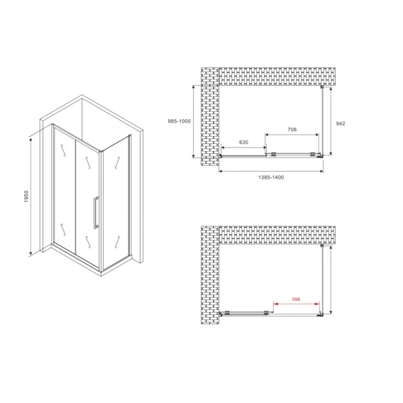 Душевой уголок 140x100 см Abber Schwarzer Diamant AG30140BMH-S100BM матовое
