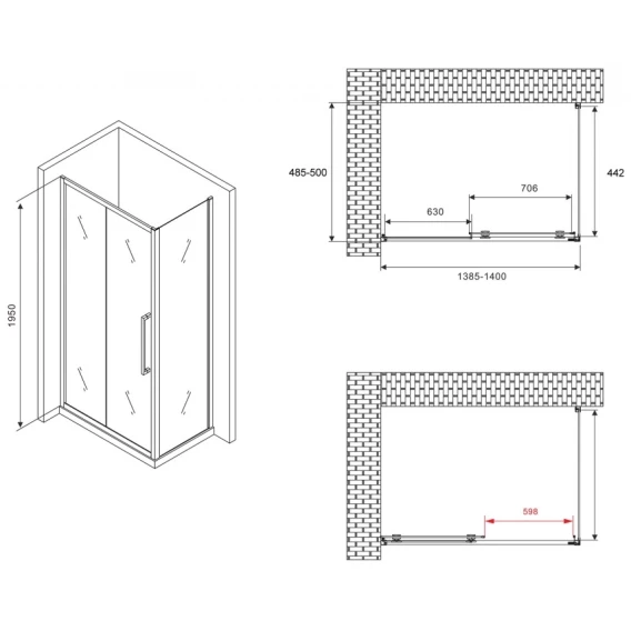 Душевой уголок 140x50 см Abber Schwarzer Diamant AG30140BH-S50B-S50B прозрачное