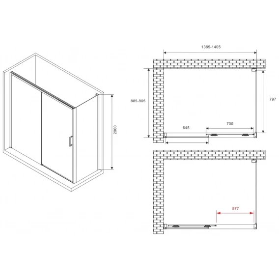 Душевой уголок 140x90 см Abber Komfort AG93140B-S92B прозрачное