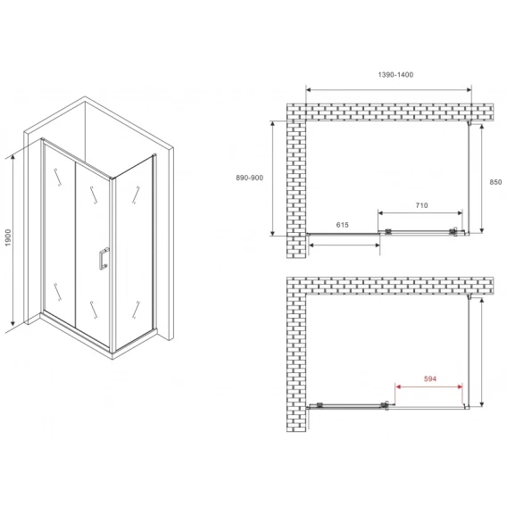 Душевой уголок 140x90 см Abber Schwarzer Diamant AG30140B5-S90B5 прозрачное