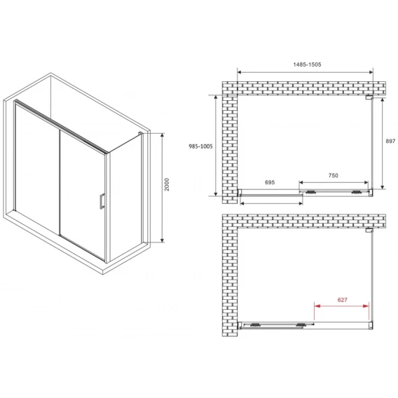 Душевой уголок 150x100 см Abber Komfort AG93150B-S102B прозрачное