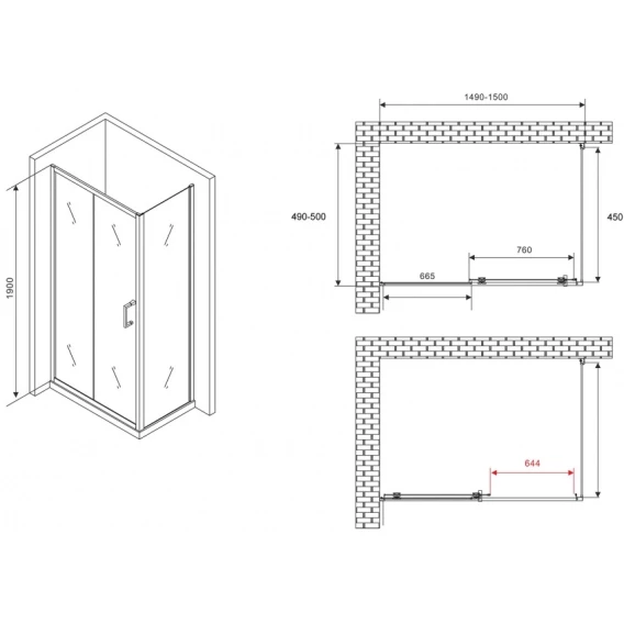 Душевой уголок 150x50 см Abber Schwarzer Diamant AG301505-S505 прозрачное