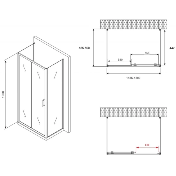 Душевой уголок 150x50 см Abber Schwarzer Diamant AG30150B-S50B-S50B прозрачное