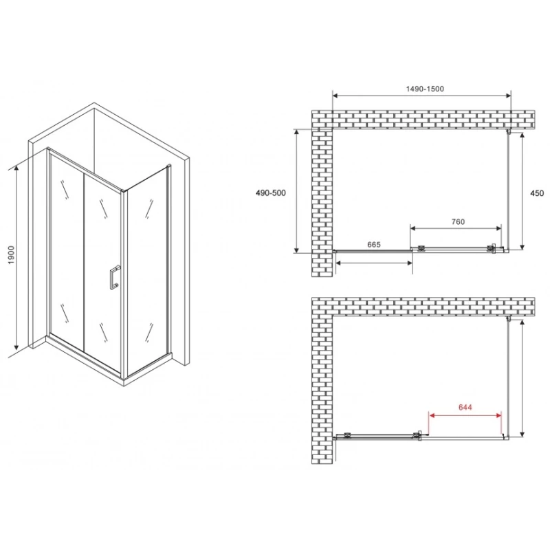 Душевой уголок 150x50 см Abber Schwarzer Diamant AG30150B5-S50B5 прозрачное