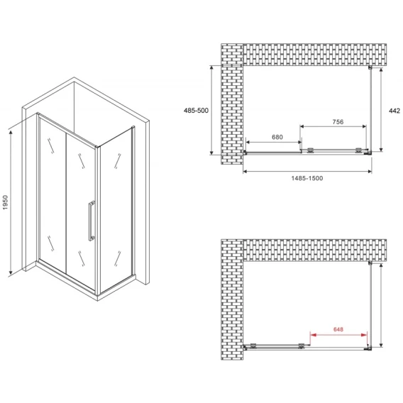 Душевой уголок 150x50 см Abber Schwarzer Diamant AG30150MH-S50M матовое